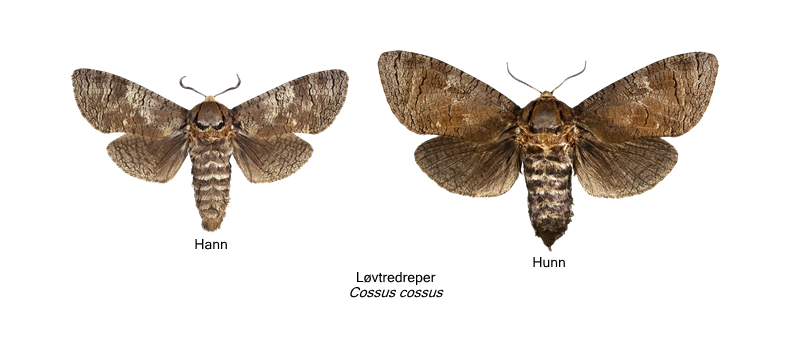 Begge vingepar er brungrå med et nettverksmønster av mørke linjer og skygger. Halskragen har gulhvit kant. Arten ligner ospetredreper men er gjennomsnittlig større og har noe bredere vinger og kraftigere kropp. Det sikreste skilletegnet er formen på antenneleddene, som kan studeres under lupe. Hos løvtredreper former hvert antenneledd en oval plate, mens hos ospetredreper er hvert ledd dratt ut i to kamtenner. Disse kjennetegnene er til stede hos begge kjønn, men er tydeligst hos hannene.