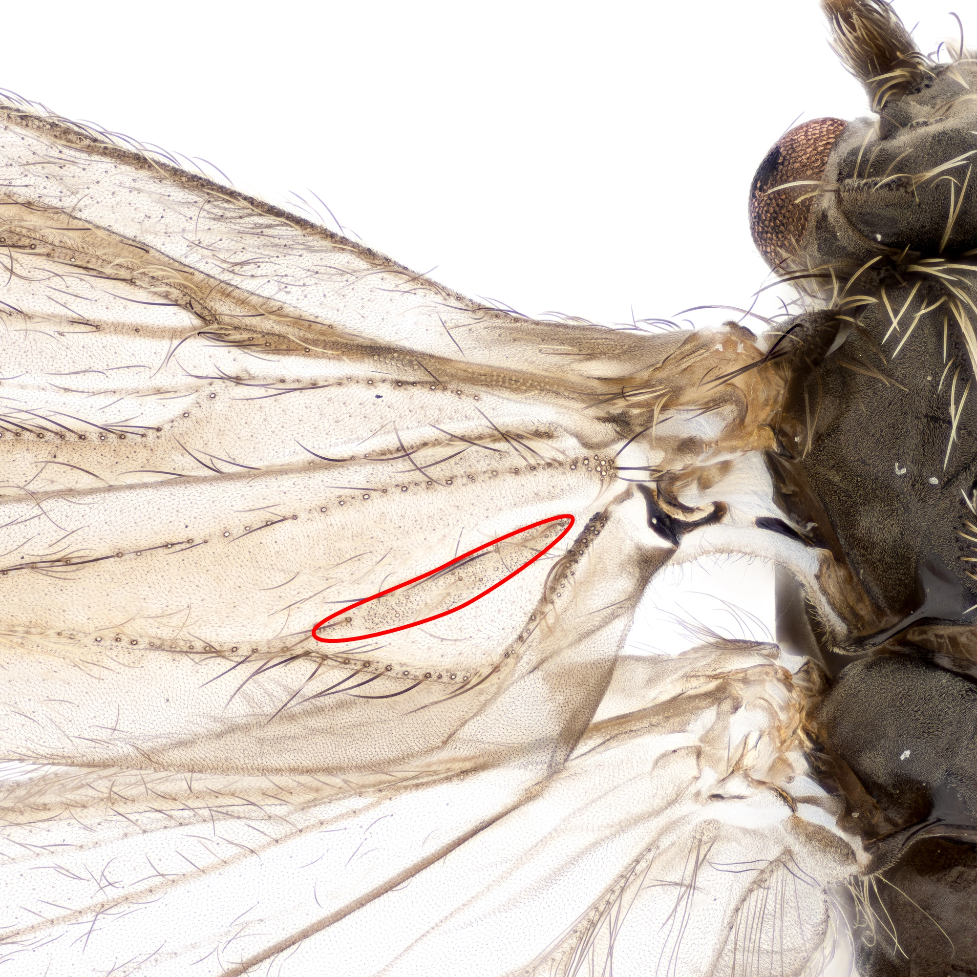 Hannen har en liten, men tydelig stripe med mikroskopiske duftskjell ved basis av framvingen.